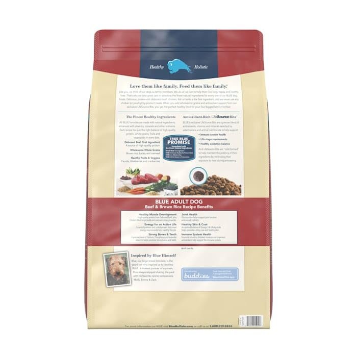 - Formulated for the health and wellbeing of adult dogs, BLUE Life Protection Formula Beef and Brown Rice dry dog food is made with the finest natural ingredients enhanced with vitamins, minerals, and other nutrients.