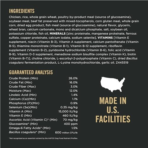 • High protein dog food dry formula, with real chicken as the first ingredient